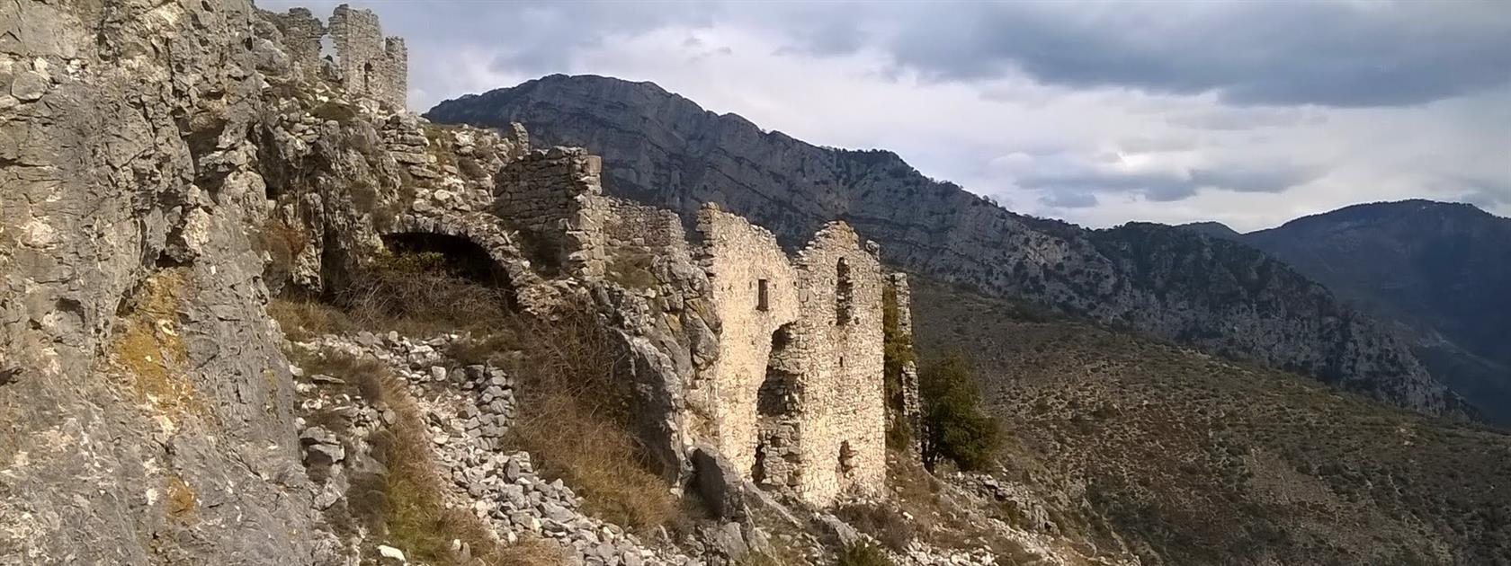 Nous étions 21, décidés à monter sur le Mont Macaron. Partis du col de Châteauneuf, nous passons devant un bâtiment en rénovation : le pigeonnier de l'ancien Châteauneuf, on voit également la chapelle St Joseph qui est en bon état. Nous prenons le sentier plein sud de la crête du Mont Macaron. Nous arrivons rapidement au sommet (806 m). Vue plongeante sur la vallée du paillon et ses carrières de ciment. Mais nous avons une très belle vue sur le Mercantour enneigé vue également sur Nice et le littoral côtier. par une bonne piste nous trouvons un bel emplacement herbeux et boisé pour faire la pause casse- croute. Nous rentrons par la piste coté est et terminons le circuit par la visite du village ruiné de Châteauvieux. Nous voyons que l'association des propriétaires du vieux village a encore fait des rénovations, mais c'est un travail de longue haleine dont on ne voit pas la fin. Journée ensoleillée avec des nuages en fin de balade.