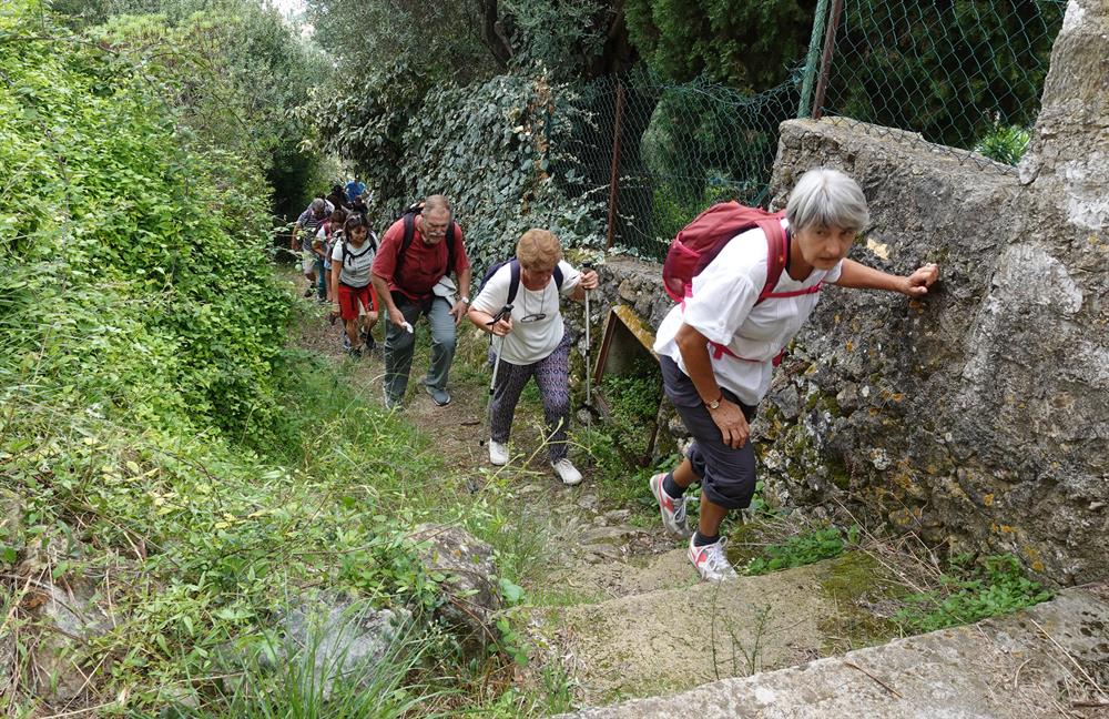 fait la première montée ( 250 m ) sur un large chemin, nous descendons par un sentier escarpé et