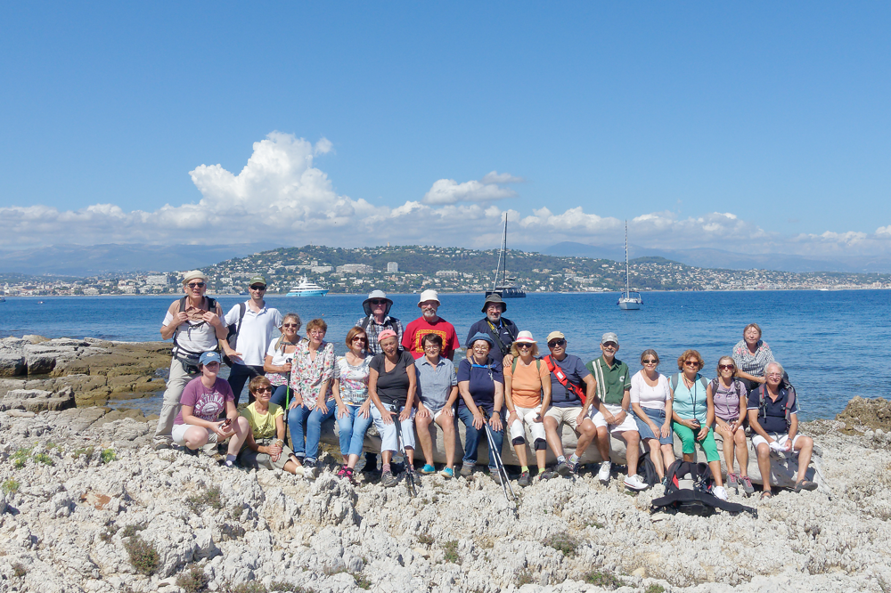 Quelques baigneurs ont trouvé l'eau bonne ! Nous avons fait un tour de l'ile complet par un chemin forestier qui laissait découvrir des criques avec une eau transparente. Le château attira 6 visiteurs qui arrivèrent à temps pour reprendre la navette nous ramenant à bon port de Cannes. Finalement un circuit sans dénivelé, 10 km environ à un rythme de sénateur ! Quelques photos