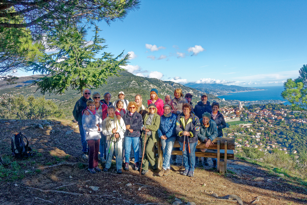 Un bon groupe ( 21 ) s'est formé pour cet itinéraire annoncé facile. Arrivé au fort de la Revère, un magnifique panorama nous attendait, le soleil sur la mer, la côte d'azur de l'Italie à St Tropez. Une brève montée à la tour de gué la Simboula où nous faisons connaissance avec les gardes du parc départemental de la grande corniche qui nous apprennent qu'il fallait les prévenir de notre présence associative ? Donc à présent à chaque fois que nous randonnerons dans un parc départemental, il faudra prendre rendez vous 15 jours à l'avance ! Très pratique !